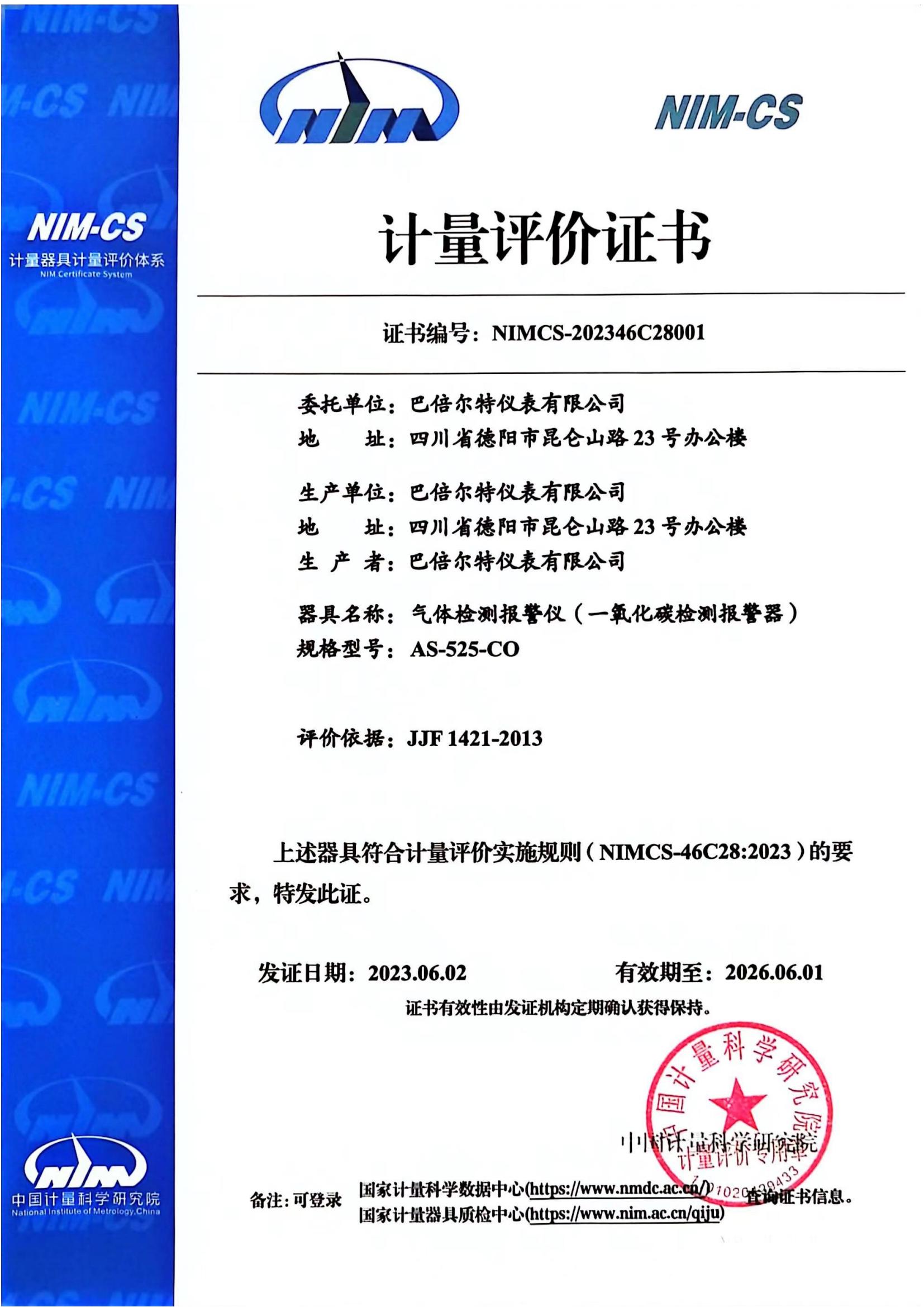 AS-525 Metrological Evaluation Certificate
